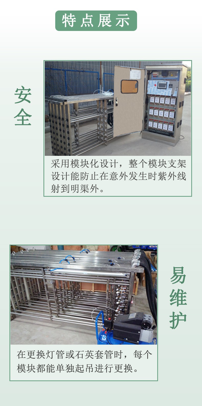 專業(yè)生產(chǎn)明渠式紫外線殺菌設(shè)備日處理量100000噸污水帶PLC和自清洗功能 可遠(yuǎn)程控制